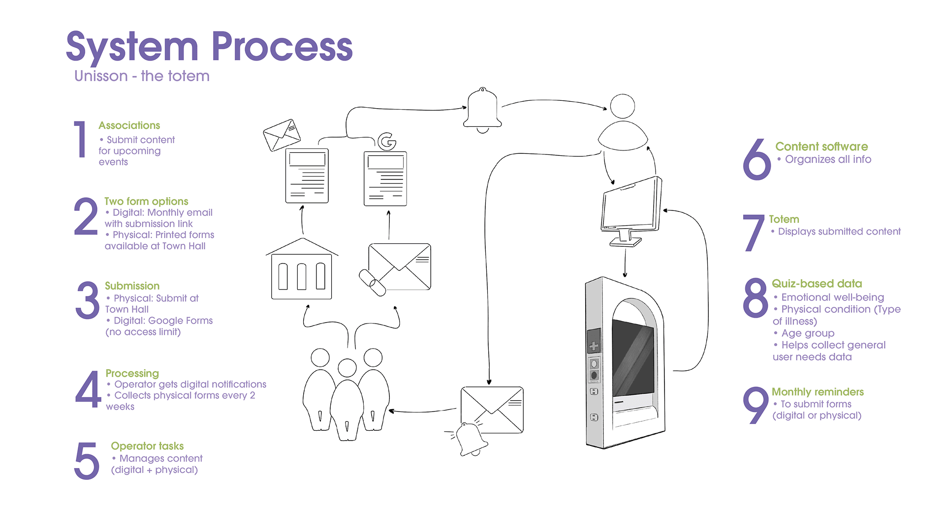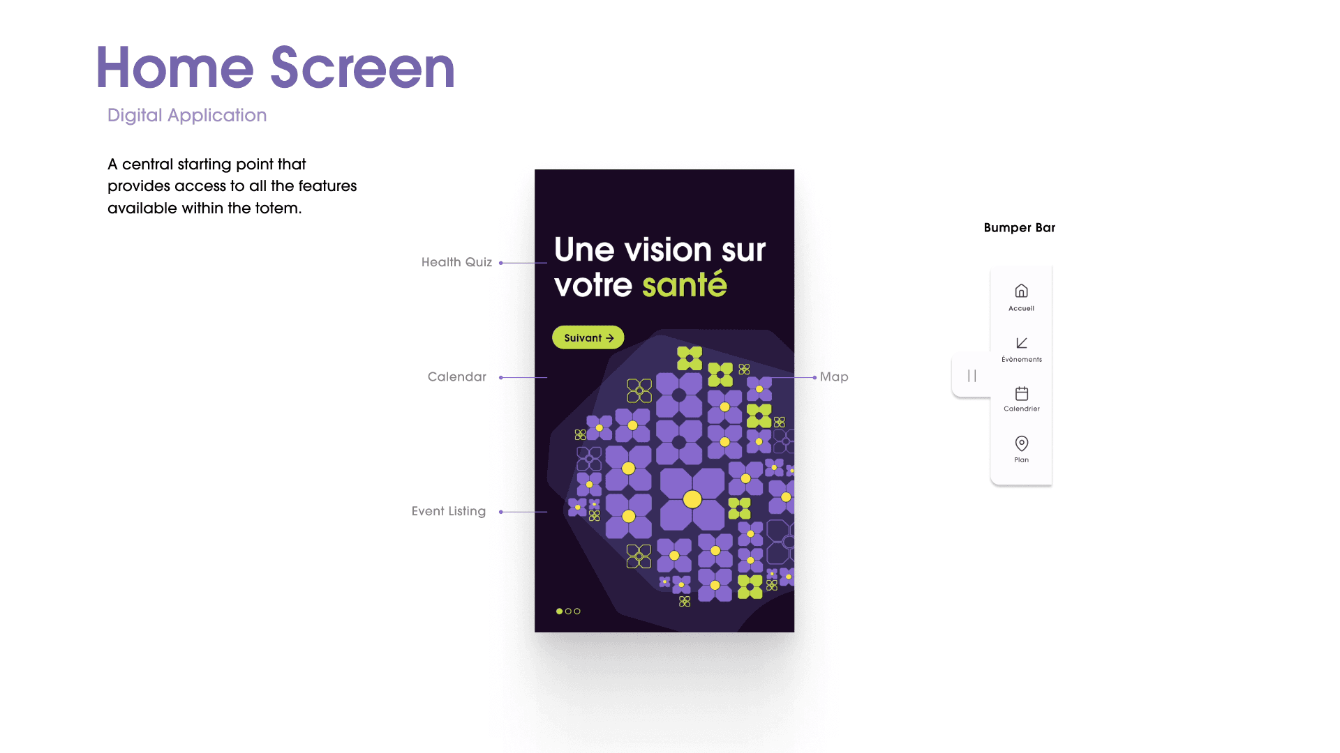 A central starting point that provides access to all the features available within the totem.