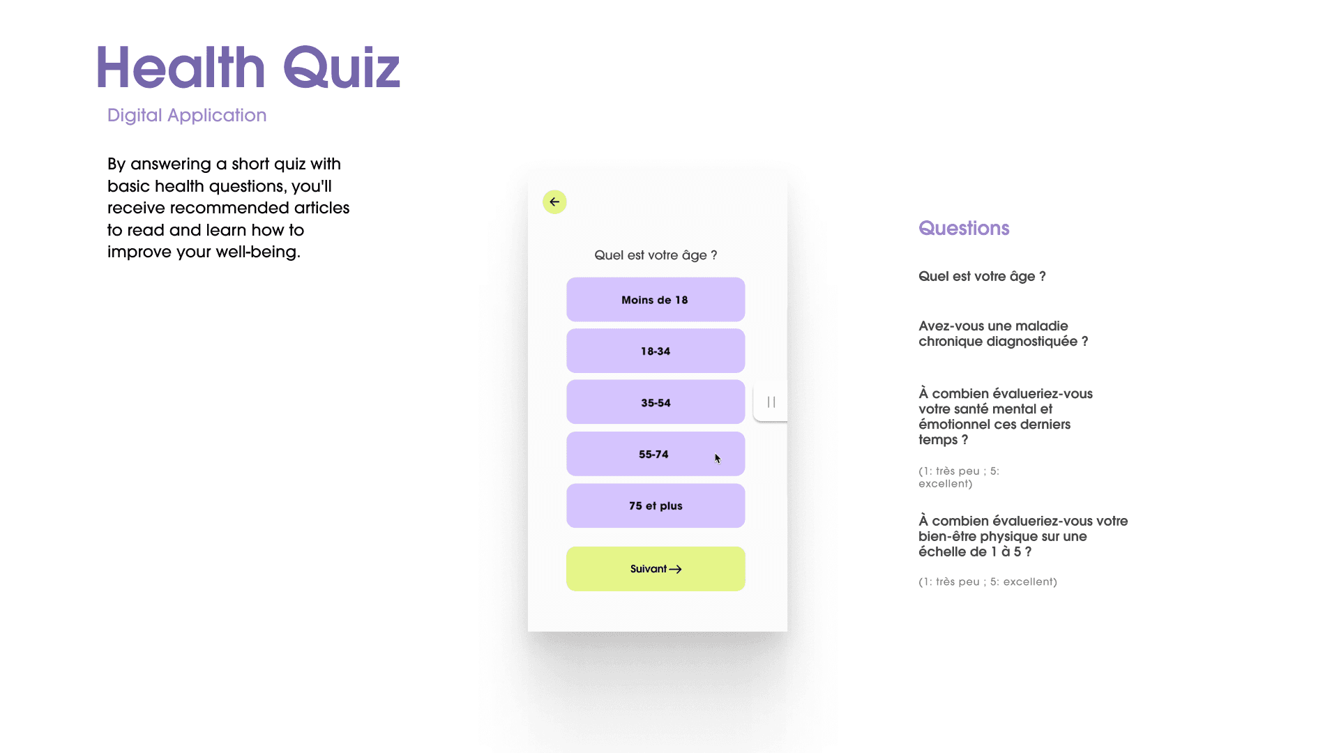 By answering a short quiz with basic health questions, you'll receive recommended articles to read and learn how to improve your well-being.
