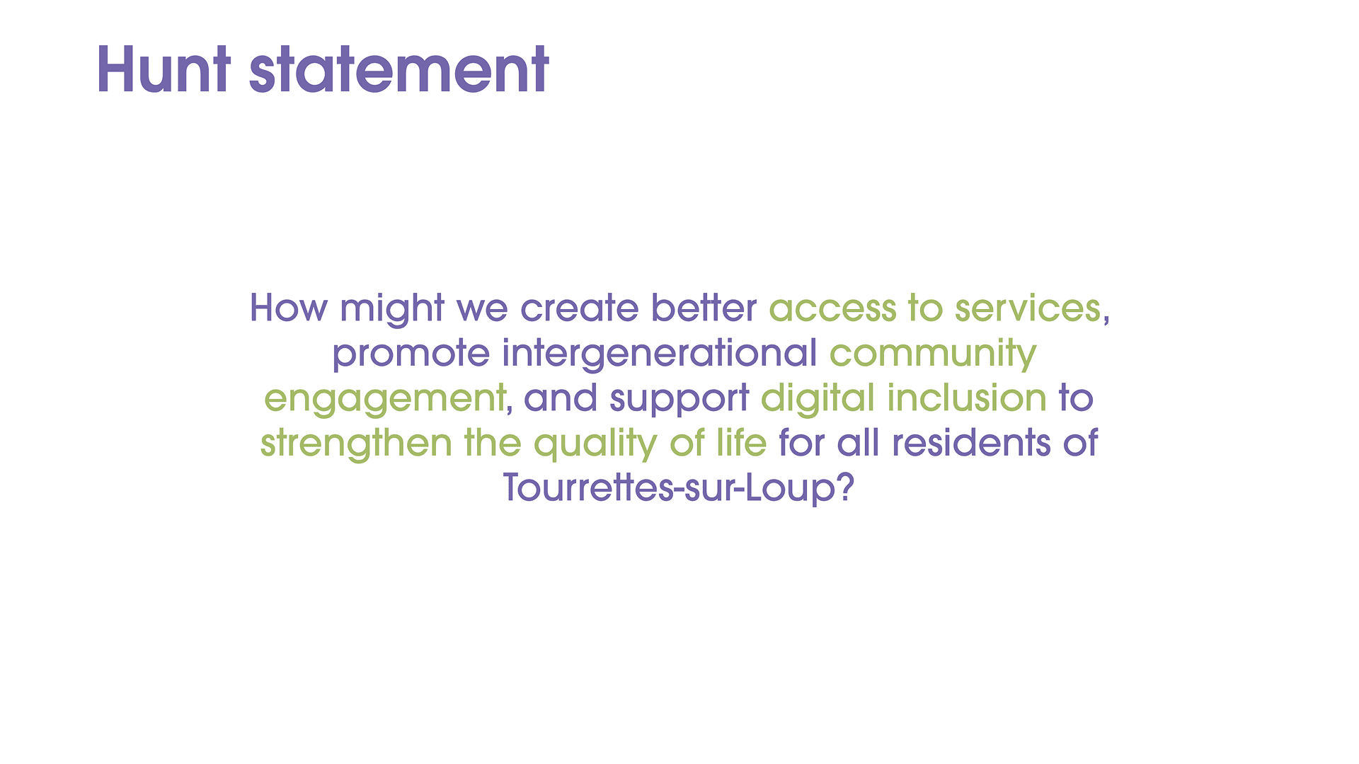 How might we create better access to services, promote intergenerational community engagement, and support digital inclusion to strengthen the quality of life for all residents of Tourrettes-sur-Loup?