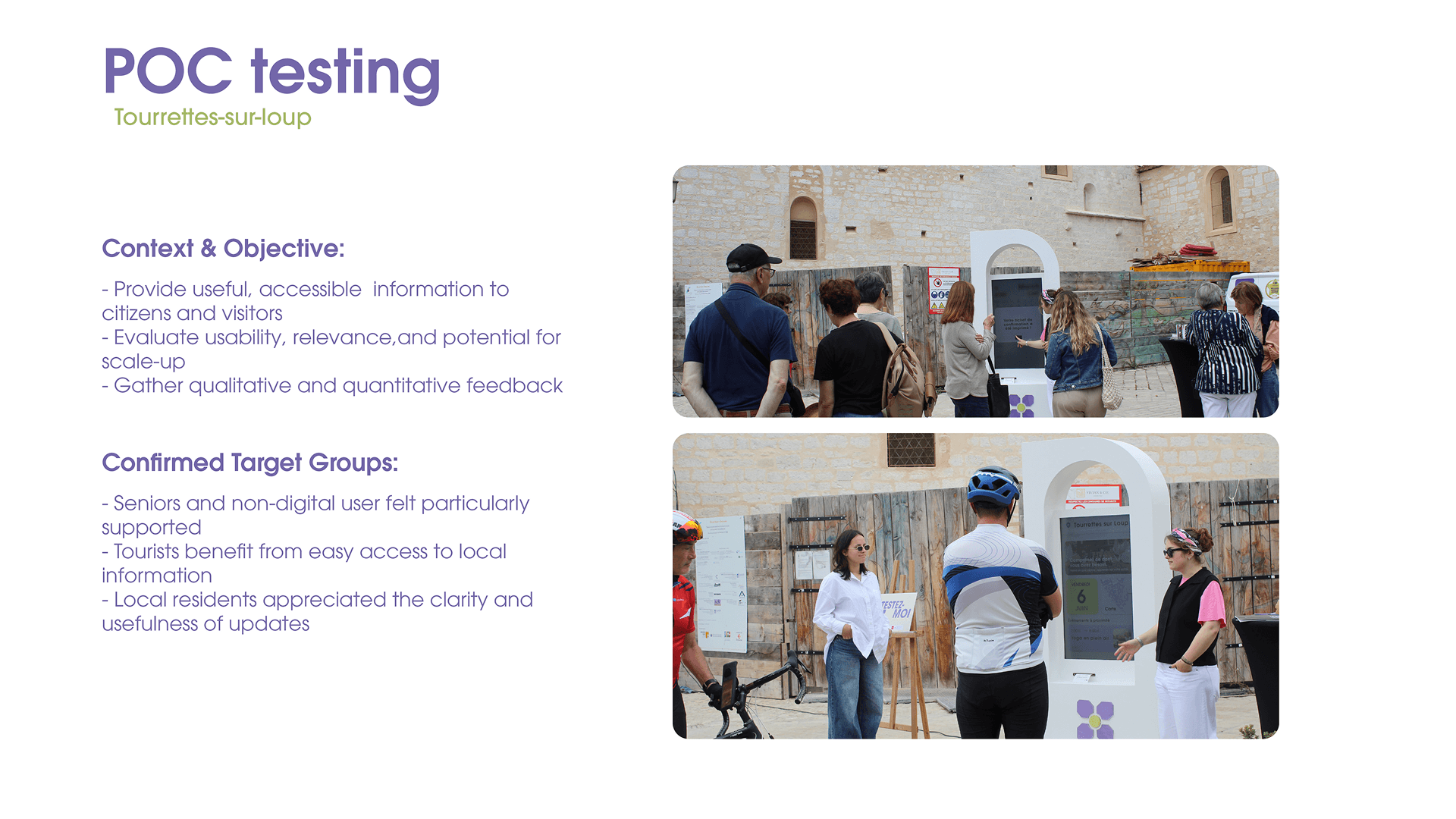 A team of three designers developed a digital interactive screen to serve as a central meeting point for residents of Tourrettes-sur-Loup, aiming to strengthen community connection and improve local mobility.